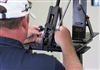 Titleist Senior Club Fitting Analyst Dino Antenucci checks the loft/lie on Morgan's Scotty Cameron Newport 1.5 Studio Style putter.