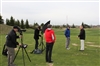 The crew sets up for the 'action shot'. Bob provides some last minute direction for both cast and crew.