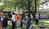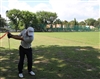 Lee started by watching the guests hit some balls.