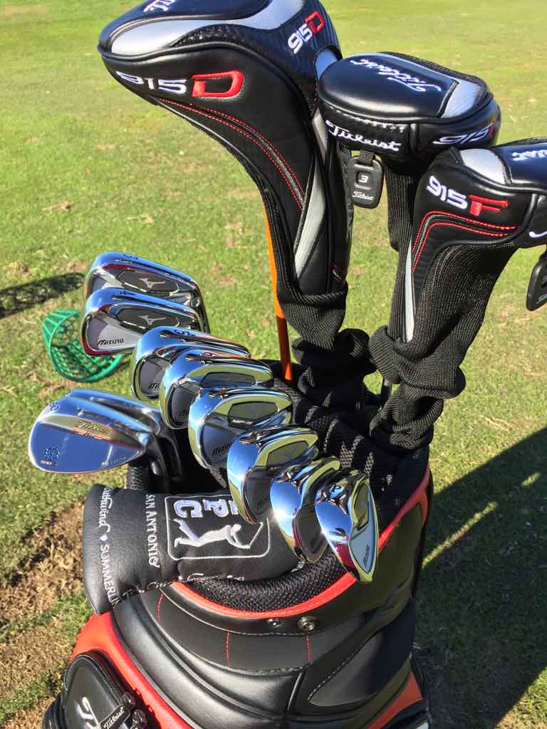 For the first time in my life, I've got 1 brand only in the entire bag. Couldn't be happier. Should have done this years ago. Driver: 915 D2 Rogue black 3 wood: 915F Rogue Black 3Hybrid: 915h Rogue black Irons: 4-pw 914 AP2's Wedges: 60 TVD, 54 TVD, and just ordered 50. All in M grind Putter: Newport2 DB Titleist bag