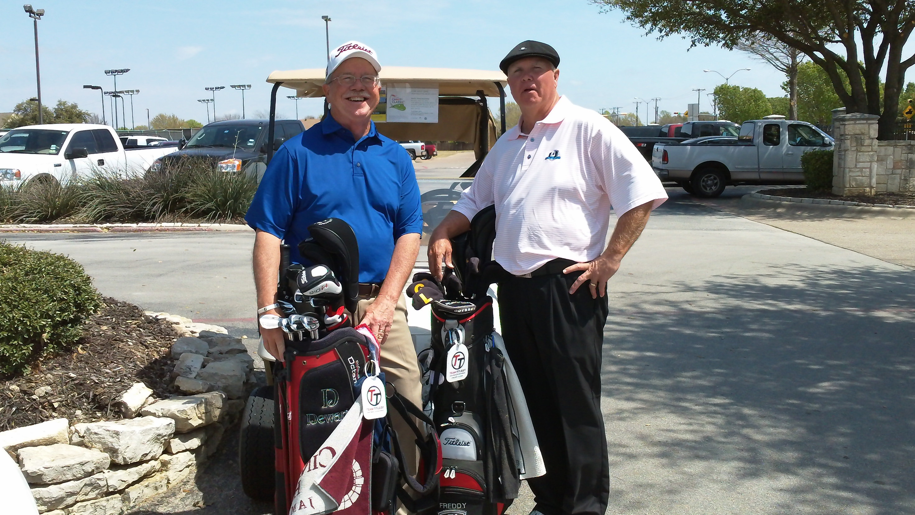Finally got a photo opportunity for me and my friend Ted (pulplvr) to show our tags at Walnut Creek CC yesterday. Played 4 rounds in 3 days with Team Titleist leading the way.