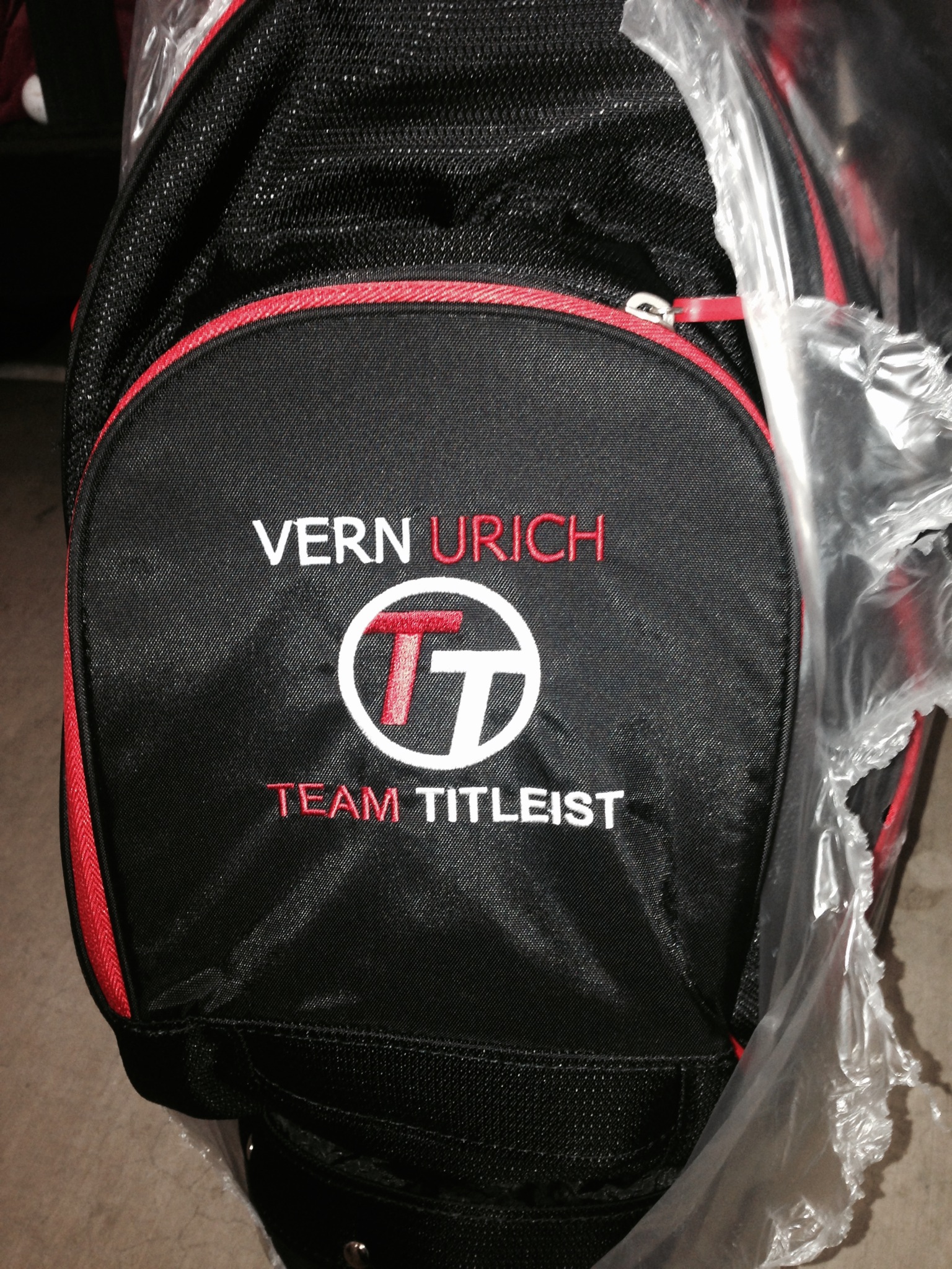 I just had my Team Titleist bag embroidered with my name. Check the local listings or yellow pages in your area. It is very inexpensive. I think it was $18.00 including tax. It was the first time to get my name on a bag and it really gives you a lift!