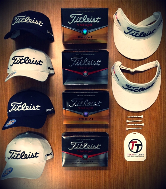 Today's prize... your choice of one (1) limited edition Team Titleist performance fabric hat (white or navy) or Tour Visor and one (1) dozen Team Titleist Pro V1 or Pro V1x golf balls.