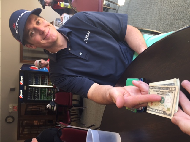 19th hole, time to pay up kid! He did it with pride but I have a feeling he's gonna get me back..