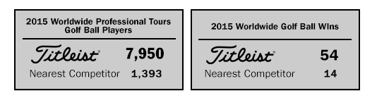In total, 7,950 players have teed up Titleist golf balls in competition on the 2015 worldwide professional tours, more than five times the nearest competitor with 1,393 and more than all competitors combined.